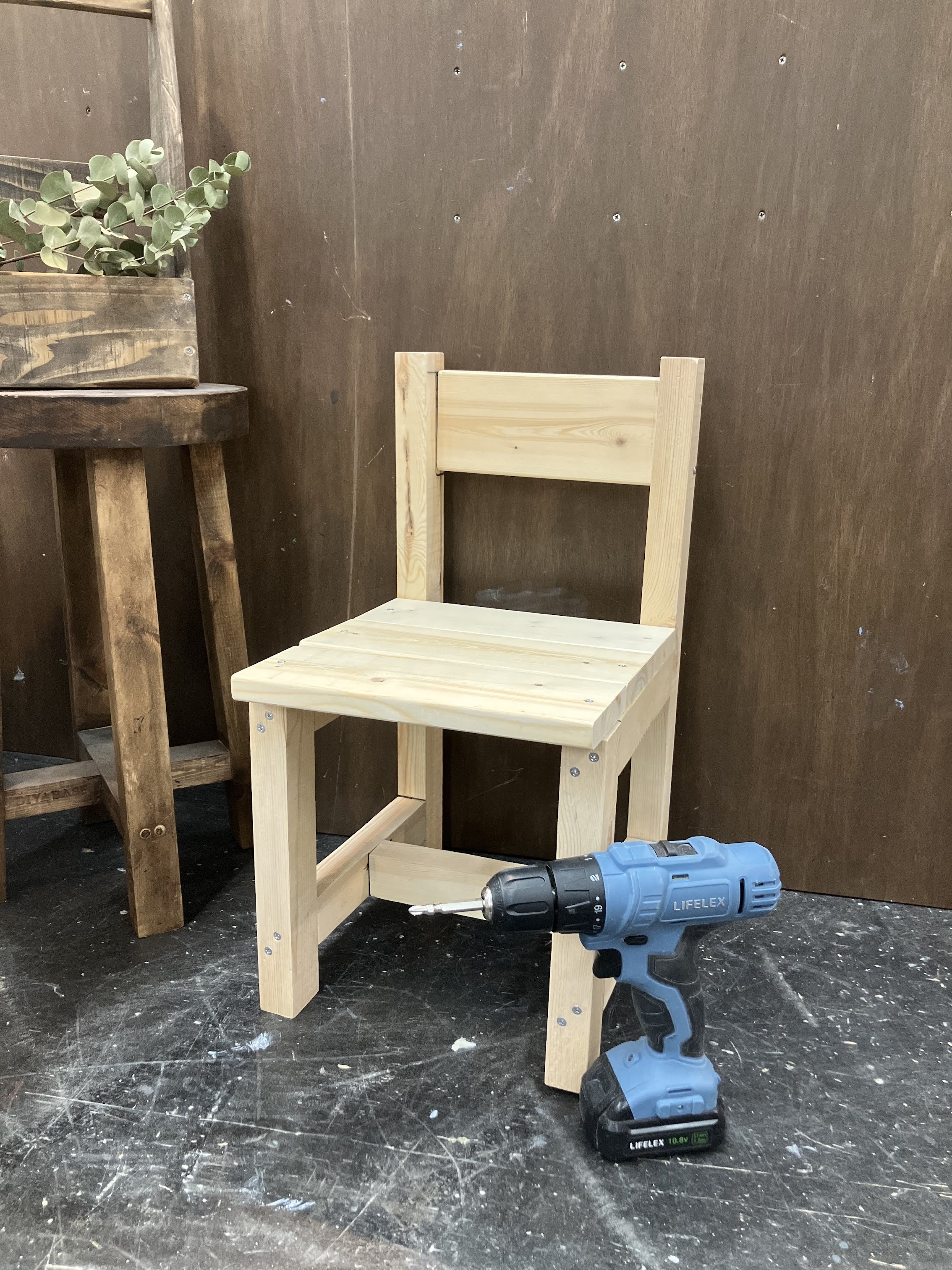 ナチュラルな雰囲気のワックス塗装で仕上げる愛らしい丸スツール。脚は2本の木材を十字に組み合わせる「相欠き継ぎ」を行うことでシンプルな見た目なのにしっかりとした安定感のある仕上がりです。DIYの上級テクニックが学べる、盛りだくさんのワークショップです。