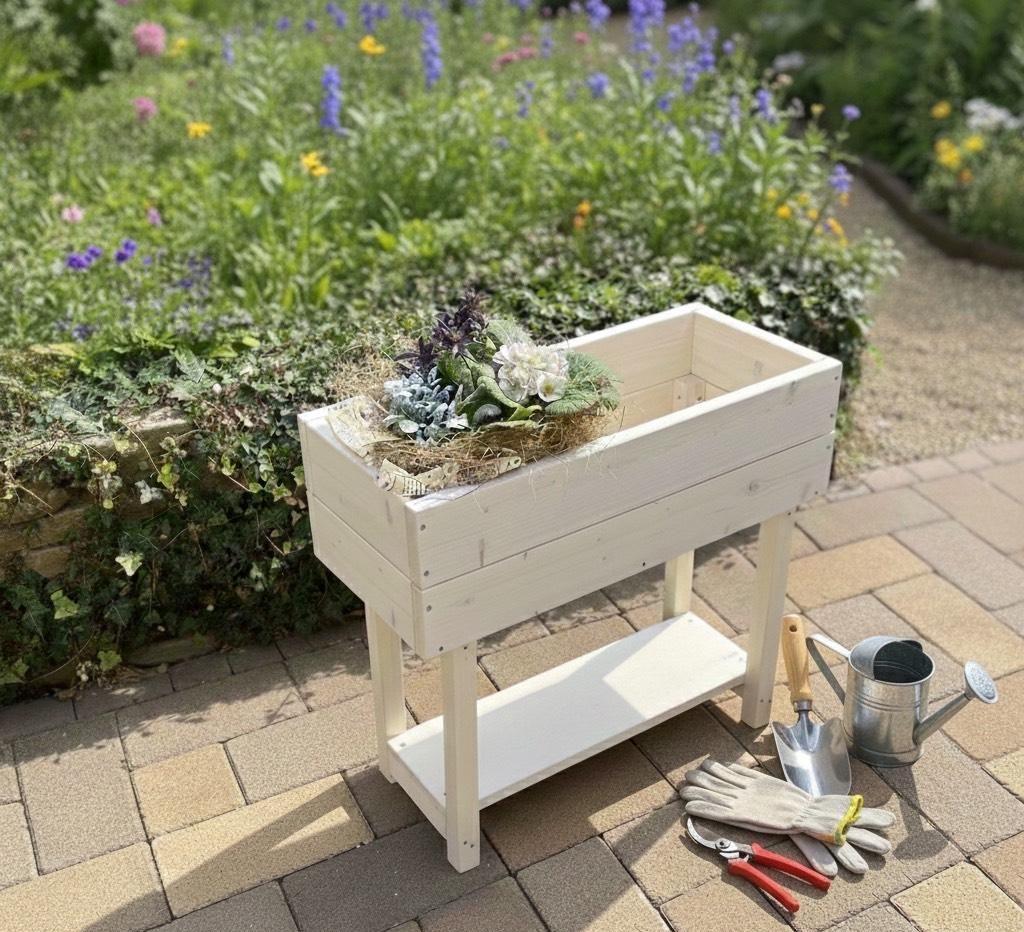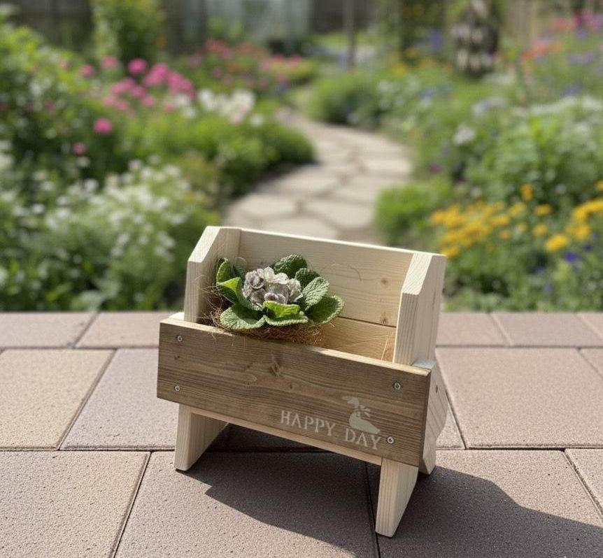 庭やインテリアにしっくりなじむシンプルなデザインのガーデンベンチ。「八の字」型に脚をつけることで、大人も座れるしっかりとした造り。屋外でもOKな塗料で仕上げるので、玄関先に置くのもおすすめです。