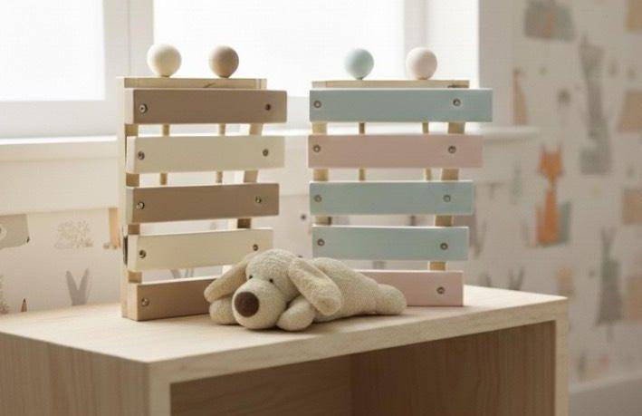 小ぶりでかわいいおもちゃの木琴♪小さなお子さまのおもちゃとしても、ぬいぐるみと飾るのにもぴったりなサイズ感。